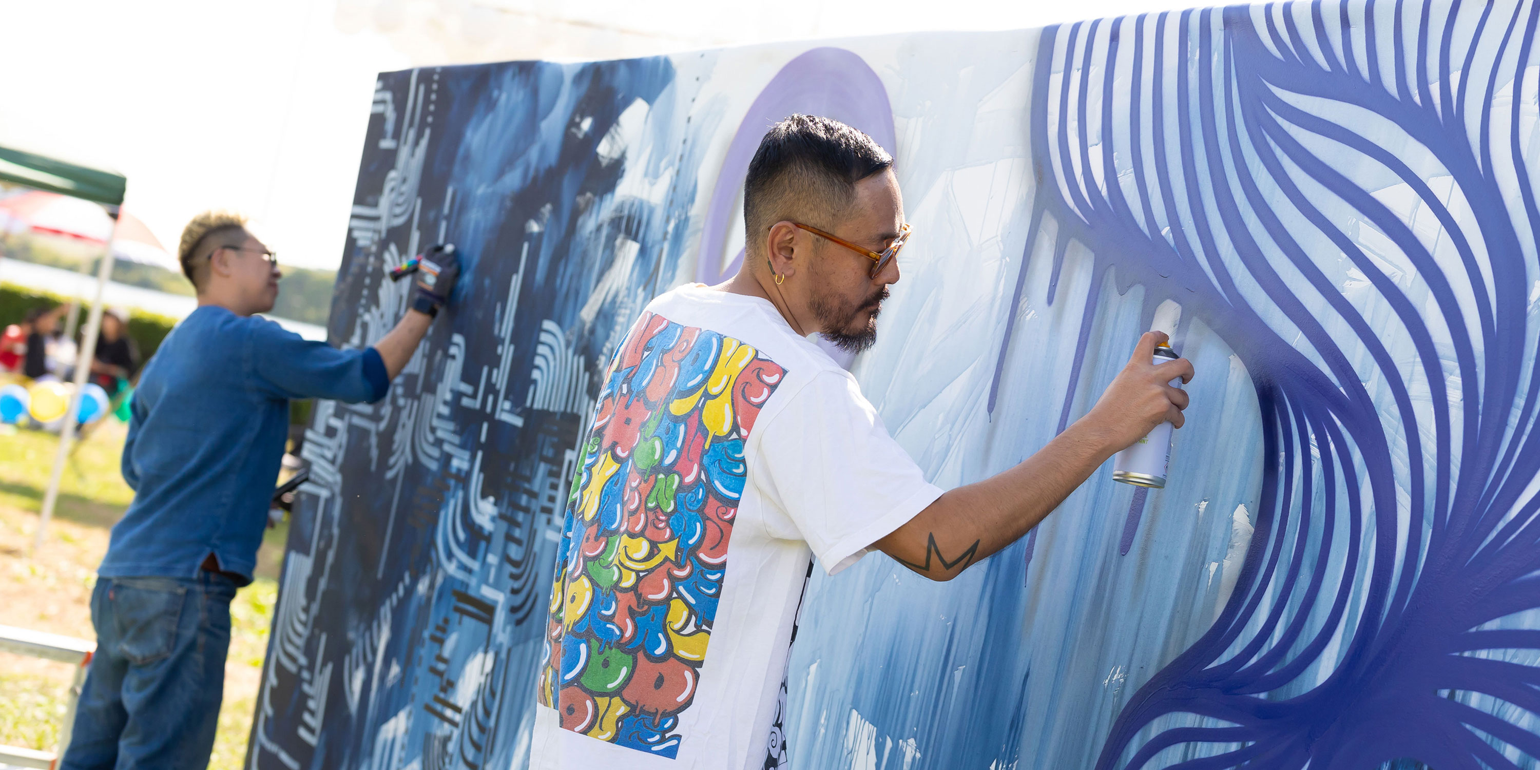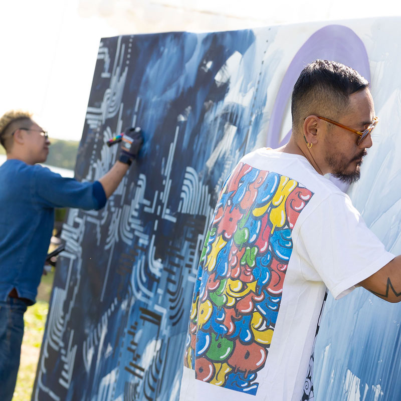今年のライブペインティングはなんと2.7Mの正方形の大きい壁面を2人のアーティストがセッションしながら1時間で描き上げます!!
