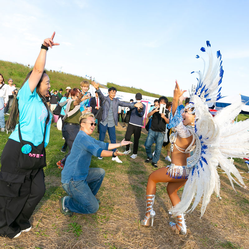 「地元市川で生まれたサンバチームとして、サンバのリズムを轟かせたいと思います。サンバの持つ限りない豊かさを伝えたいと思います。」